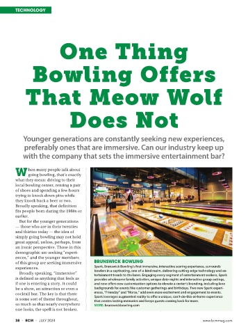 experiences. Spark, Brunswick Bowling’s rst immersive, interactive scoring experience, surrounds