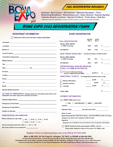 a refund, less $50 administrative fee. To view General Registration and Official Attendance Policies, visit www.bowlexpo.com.